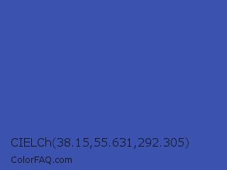 CIELCh 38.15,55.631,292.305 Color is a normal blue color and the nearest color is Violet Blue #324ab2. Hex code #3b53ae and RGB value is rgb(59,83,174). In RGB color space, this color is composed of 23% red, 33% green, 68% blue, In CMYK color space, this color is composed of 66% cyan, 52% magenta, 0% yellow , 32% black , In HSL color space, this color has a hue angle of 227° , 49% saturation and 46% lightness.