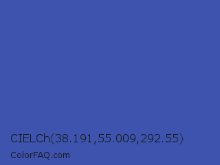 CIELCh 38.191,55.009,292.55 Color is a normal blue color and the nearest color is Violet Blue #324ab2. Hex code #3d53ad and RGB value is rgb(61,83,173). In RGB color space, this color is composed of 24% red, 33% green, 68% blue, In CMYK color space, this color is composed of 65% cyan, 52% magenta, 0% yellow , 32% black , In HSL color space, this color has a hue angle of 228° , 48% saturation and 46% lightness.