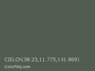CIELCh 38.23,11.775,141.869 Color is a normal green color and the nearest color is Feldgrau #4d5d53. Hex code #4f5e4e and RGB value is rgb(79,94,78). In RGB color space, this color is composed of 31% red, 37% green, 31% blue, In CMYK color space, this color is composed of 16% cyan, 0% magenta, 17% yellow , 63% black , In HSL color space, this color has a hue angle of 116° , 9% saturation and 34% lightness.