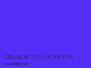 CIELCh 38.77,113.9,306.179 Color is a normal indigo color and the nearest color is Han Purple #5218fa. Hex code #532ff6 and RGB value is rgb(83,47,246). In RGB color space, this color is composed of 33% red, 18% green, 96% blue, In CMYK color space, this color is composed of 66% cyan, 81% magenta, 0% yellow , 4% black , In HSL color space, this color has a hue angle of 251° , 92% saturation and 57% lightness.