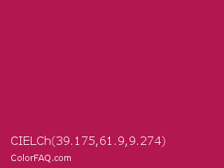 CIELCh 39.175,61.9,9.274 Color is a normal rose color and the nearest color is French Wine #ac1e44. Hex code #b3174f and RGB value is rgb(179,23,79). In RGB color space, this color is composed of 70% red, 9% green, 31% blue, In CMYK color space, this color is composed of 0% cyan, 87% magenta, 56% yellow , 30% black , In HSL color space, this color has a hue angle of 338° , 77% saturation and 40% lightness.