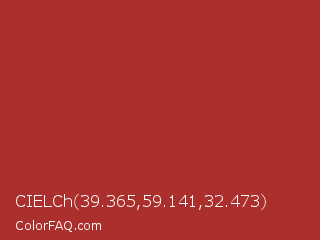 CIELCh 39.365,59.141,32.473 Color is a normal red color and the nearest color is Red Brown #a52a2a. Hex code #ab2f2c and RGB value is rgb(171,47,44). In RGB color space, this color is composed of 67% red, 18% green, 17% blue, In CMYK color space, this color is composed of 0% cyan, 73% magenta, 74% yellow , 33% black , In HSL color space, this color has a hue angle of 1° , 59% saturation and 42% lightness.
