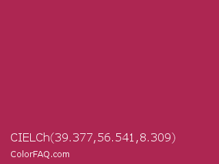 CIELCh 39.377,56.541,8.309 Color is a normal rose color and the nearest color is Amaranth Purple #ab274f. Hex code #ad2652 and RGB value is rgb(173,38,82). In RGB color space, this color is composed of 68% red, 15% green, 32% blue, In CMYK color space, this color is composed of 0% cyan, 78% magenta, 53% yellow , 32% black , In HSL color space, this color has a hue angle of 340° , 64% saturation and 41% lightness.