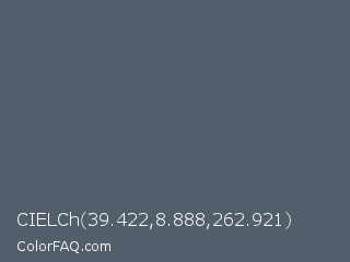 CIELCh 39.422,8.888,262.921 Color is a normal blue color and the nearest color is Black Coral #54626f. Hex code #535e6b and RGB value is rgb(83,94,107). In RGB color space, this color is composed of 33% red, 37% green, 42% blue, In CMYK color space, this color is composed of 22% cyan, 12% magenta, 0% yellow , 58% black , In HSL color space, this color has a hue angle of 213° , 13% saturation and 37% lightness.