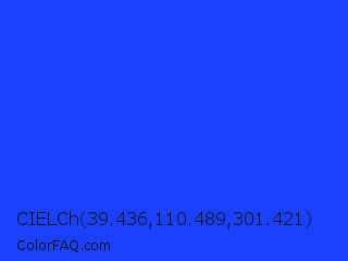 CIELCh 39.436,110.489,301.421 Color is a normal blue color and the nearest color is Blue RYB #0247fe. Hex code #1a40fc and RGB value is rgb(26,64,252). In RGB color space, this color is composed of 10% red, 25% green, 99% blue, In CMYK color space, this color is composed of 90% cyan, 75% magenta, 0% yellow , 1% black , In HSL color space, this color has a hue angle of 230° , 97% saturation and 55% lightness.
