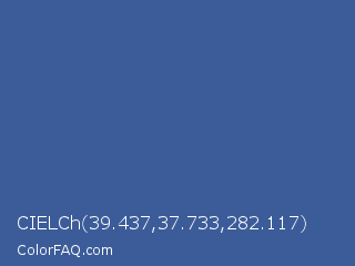 CIELCh 39.437,37.733,282.117 Color is a normal blue color and the nearest color is Azure #315ba1. Hex code #3c5c99 and RGB value is rgb(60,92,153). In RGB color space, this color is composed of 24% red, 36% green, 60% blue, In CMYK color space, this color is composed of 61% cyan, 40% magenta, 0% yellow , 40% black , In HSL color space, this color has a hue angle of 219° , 44% saturation and 42% lightness.