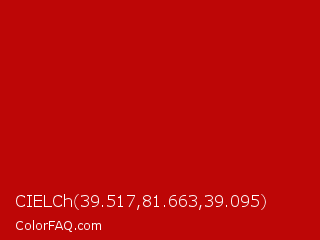 CIELCh 39.517,81.663,39.095 Color is a normal red color and the nearest color is Guardsman Red #ba0101. Hex code #bd0606 and RGB value is rgb(189,6,6). In RGB color space, this color is composed of 74% red, 2% green, 2% blue, In CMYK color space, this color is composed of 0% cyan, 97% magenta, 97% yellow , 26% black , In HSL color space, this color has a hue angle of 0° , 94% saturation and 38% lightness.