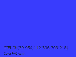CIELCh 39.954,112.306,303.218 Color is a light blue color and the nearest color is Palatinate Blue #273be2. Hex code #3a3cfd and RGB value is rgb(58,60,253). In RGB color space, this color is composed of 23% red, 24% green, 99% blue, In CMYK color space, this color is composed of 77% cyan, 76% magenta, 0% yellow , 1% black , In HSL color space, this color has a hue angle of 239° , 98% saturation and 61% lightness.