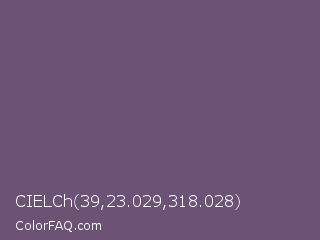 CIELCh 39,23.029,318.028 Color is a normal purple color and the nearest color is Salt Box #685e6e. Hex code #6c5375 and RGB value is rgb(108,83,117). In RGB color space, this color is composed of 42% red, 33% green, 46% blue, In CMYK color space, this color is composed of 8% cyan, 29% magenta, 0% yellow , 54% black , In HSL color space, this color has a hue angle of 284° , 17% saturation and 39% lightness.