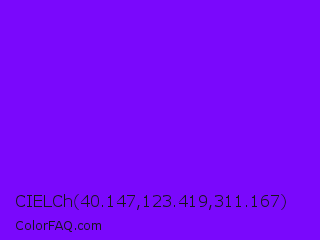 CIELCh 40.147,123.419,311.167 Color is a normal violet color and the nearest color is Violet Color Wheel #7f00ff. Hex code #7a08fc and RGB value is rgb(122,8,252). In RGB color space, this color is composed of 48% red, 3% green, 99% blue, In CMYK color space, this color is composed of 52% cyan, 97% magenta, 0% yellow , 1% black , In HSL color space, this color has a hue angle of 268° , 98% saturation and 51% lightness.