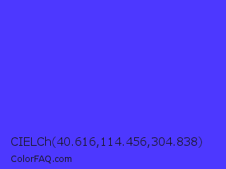 CIELCh 40.616,114.456,304.838 Color is a light indigo color and the nearest color is Han Purple #5218fa. Hex code #4d38ff and RGB value is rgb(77,56,255). In RGB color space, this color is composed of 30% red, 22% green, 100% blue, In CMYK color space, this color is composed of 70% cyan, 78% magenta, 0% yellow , 0% black , In HSL color space, this color has a hue angle of 246° , 100% saturation and 61% lightness.