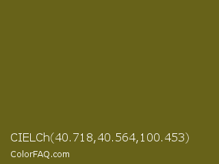 CIELCh 40.718,40.564,100.453 Color is a dark yellow color and the nearest color is Himalaya #6a5d1b. Hex code #676219 and RGB value is rgb(103,98,25). In RGB color space, this color is composed of 40% red, 38% green, 10% blue, In CMYK color space, this color is composed of 0% cyan, 5% magenta, 76% yellow , 60% black , In HSL color space, this color has a hue angle of 56° , 61% saturation and 25% lightness.