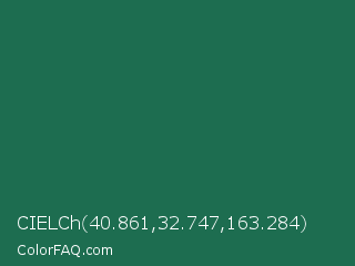 CIELCh 40.861,32.747,163.284 Color is a dark green color and the nearest color is Dark Spring Green #177245. Hex code #1d6d50 and RGB value is rgb(29,109,80). In RGB color space, this color is composed of 11% red, 43% green, 31% blue, In CMYK color space, this color is composed of 73% cyan, 0% magenta, 27% yellow , 57% black , In HSL color space, this color has a hue angle of 158° , 58% saturation and 27% lightness.