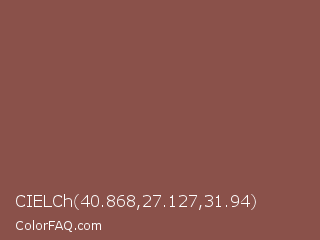 CIELCh 40.868,27.127,31.94 Color is a normal red color and the nearest color is Spicy Mix #885342. Hex code #8a514a and RGB value is rgb(138,81,74). In RGB color space, this color is composed of 54% red, 32% green, 29% blue, In CMYK color space, this color is composed of 0% cyan, 41% magenta, 46% yellow , 46% black , In HSL color space, this color has a hue angle of 7° , 30% saturation and 42% lightness.