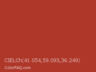 CIELCh 41.054,59.093,36.249 Color is a normal red color and the nearest color is Sweet Brown #a83731. Hex code #ae372a and RGB value is rgb(174,55,42). In RGB color space, this color is composed of 68% red, 22% green, 16% blue, In CMYK color space, this color is composed of 0% cyan, 68% magenta, 76% yellow , 32% black , In HSL color space, this color has a hue angle of 6° , 61% saturation and 42% lightness.