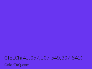 CIELCh 41.057,107.549,307.541 Color is a normal indigo color and the nearest color is Majorelle Blue #6050dc. Hex code #6935f1 and RGB value is rgb(105,53,241). In RGB color space, this color is composed of 41% red, 21% green, 95% blue, In CMYK color space, this color is composed of 56% cyan, 78% magenta, 0% yellow , 5% black , In HSL color space, this color has a hue angle of 257° , 87% saturation and 58% lightness.
