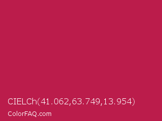 CIELCh 41.062,63.749,13.954 Color is a normal rose color and the nearest color is Maroon Flush #c32148. Hex code #bb1c4b and RGB value is rgb(187,28,75). In RGB color space, this color is composed of 73% red, 11% green, 29% blue, In CMYK color space, this color is composed of 0% cyan, 85% magenta, 60% yellow , 27% black , In HSL color space, this color has a hue angle of 342° , 74% saturation and 42% lightness.