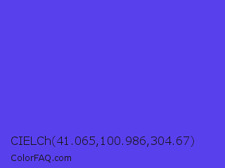 CIELCh 41.065,100.986,304.67 Color is a normal indigo color and the nearest color is Majorelle Blue #6050dc. Hex code #5940ed and RGB value is rgb(89,64,237). In RGB color space, this color is composed of 35% red, 25% green, 93% blue, In CMYK color space, this color is composed of 62% cyan, 73% magenta, 0% yellow , 7% black , In HSL color space, this color has a hue angle of 249° , 83% saturation and 59% lightness.