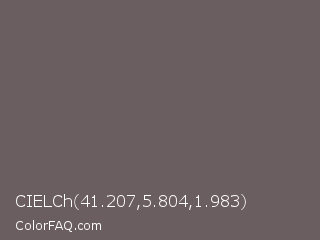 CIELCh 41.207,5.804,1.983 Color is a normal red color and the nearest color is Scorpion #695f62. Hex code #6b5e61 and RGB value is rgb(107,94,97). In RGB color space, this color is composed of 42% red, 37% green, 38% blue, In CMYK color space, this color is composed of 0% cyan, 12% magenta, 9% yellow , 58% black , In HSL color space, this color has a hue angle of 346° , 6% saturation and 39% lightness.