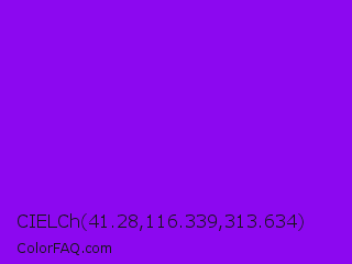 CIELCh 41.28,116.339,313.634 Color is a normal purple color and the nearest color is Electric Violet #8b00ff. Hex code #8c08f0 and RGB value is rgb(140,8,240). In RGB color space, this color is composed of 55% red, 3% green, 94% blue, In CMYK color space, this color is composed of 42% cyan, 97% magenta, 0% yellow , 6% black , In HSL color space, this color has a hue angle of 274° , 94% saturation and 49% lightness.