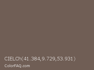 CIELCh 41.384,9.729,53.931 Color is a normal orange color and the nearest color is Pine Cone #6d5e54. Hex code #705e55 and RGB value is rgb(112,94,85). In RGB color space, this color is composed of 44% red, 37% green, 33% blue, In CMYK color space, this color is composed of 0% cyan, 16% magenta, 24% yellow , 56% black , In HSL color space, this color has a hue angle of 20° , 14% saturation and 39% lightness.