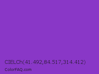 CIELCh 41.492,84.517,314.412 Color is a normal purple color and the nearest color is Dark Orchid #9932cc. Hex code #8937c7 and RGB value is rgb(137,55,199). In RGB color space, this color is composed of 54% red, 22% green, 78% blue, In CMYK color space, this color is composed of 31% cyan, 72% magenta, 0% yellow , 22% black , In HSL color space, this color has a hue angle of 274° , 57% saturation and 50% lightness.