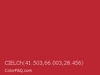CIELCh 41.503,66.003,28.456 Color is a normal red color and the nearest color is Tall Poppy #b32d29. Hex code #bb2632 and RGB value is rgb(187,38,50). In RGB color space, this color is composed of 73% red, 15% green, 20% blue, In CMYK color space, this color is composed of 0% cyan, 80% magenta, 73% yellow , 27% black , In HSL color space, this color has a hue angle of 355° , 66% saturation and 44% lightness.