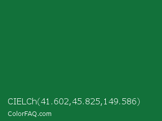 CIELCh 41.602,45.825,149.586 Color is a dark green color and the nearest color is Jewel #126b40. Hex code #12713a and RGB value is rgb(18,113,58). In RGB color space, this color is composed of 7% red, 44% green, 23% blue, In CMYK color space, this color is composed of 84% cyan, 0% magenta, 49% yellow , 56% black , In HSL color space, this color has a hue angle of 145° , 73% saturation and 26% lightness.
