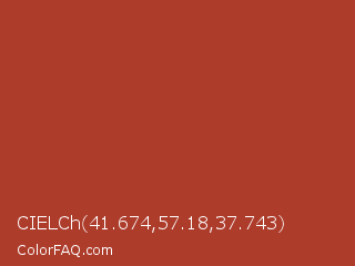 CIELCh 41.674,57.18,37.743 Color is a normal red color and the nearest color is Sweet Brown #a83731. Hex code #ad3c2b and RGB value is rgb(173,60,43). In RGB color space, this color is composed of 68% red, 24% green, 17% blue, In CMYK color space, this color is composed of 0% cyan, 65% magenta, 75% yellow , 32% black , In HSL color space, this color has a hue angle of 8° , 60% saturation and 42% lightness.