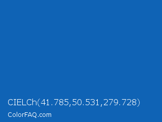 CIELCh 41.785,50.531,279.728 Color is a normal blue color and the nearest color is Green Blue #1164b4. Hex code #0f63b5 and RGB value is rgb(15,99,181). In RGB color space, this color is composed of 6% red, 39% green, 71% blue, In CMYK color space, this color is composed of 92% cyan, 45% magenta, 0% yellow , 29% black , In HSL color space, this color has a hue angle of 210° , 85% saturation and 38% lightness.