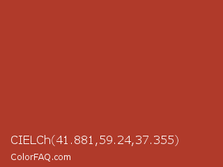 CIELCh 41.881,59.24,37.355 Color is a normal red color and the nearest color is Sweet Brown #a83731. Hex code #b03a2a and RGB value is rgb(176,58,42). In RGB color space, this color is composed of 69% red, 23% green, 16% blue, In CMYK color space, this color is composed of 0% cyan, 67% magenta, 76% yellow , 31% black , In HSL color space, this color has a hue angle of 7° , 61% saturation and 43% lightness.