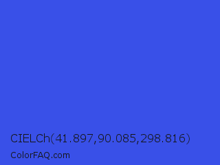 CIELCh 41.897,90.085,298.816 Color is a normal blue color and the nearest color is Ultramarine Blue #4166f5. Hex code #3950e8 and RGB value is rgb(57,80,232). In RGB color space, this color is composed of 22% red, 31% green, 91% blue, In CMYK color space, this color is composed of 75% cyan, 66% magenta, 0% yellow , 9% black , In HSL color space, this color has a hue angle of 232° , 79% saturation and 57% lightness.