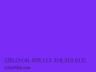 CIELCh 41.935,112.318,310.015 Color is a normal violet color and the nearest color is Blue Violet #8a2be2. Hex code #7a2bf5 and RGB value is rgb(122,43,245). In RGB color space, this color is composed of 48% red, 17% green, 96% blue, In CMYK color space, this color is composed of 50% cyan, 82% magenta, 0% yellow , 4% black , In HSL color space, this color has a hue angle of 263° , 91% saturation and 56% lightness.