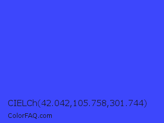CIELCh 42.042,105.758,301.744 Color is a light blue color and the nearest color is Ultramarine Blue #4166f5. Hex code #3d47fc and RGB value is rgb(61,71,252). In RGB color space, this color is composed of 24% red, 28% green, 99% blue, In CMYK color space, this color is composed of 76% cyan, 72% magenta, 0% yellow , 1% black , In HSL color space, this color has a hue angle of 237° , 97% saturation and 61% lightness.