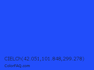 CIELCh 42.051,101.848,299.278 Color is a normal blue color and the nearest color is Palatinate Blue #273be2. Hex code #214dfa and RGB value is rgb(33,77,250). In RGB color space, this color is composed of 13% red, 30% green, 98% blue, In CMYK color space, this color is composed of 87% cyan, 69% magenta, 0% yellow , 2% black , In HSL color space, this color has a hue angle of 228° , 96% saturation and 55% lightness.