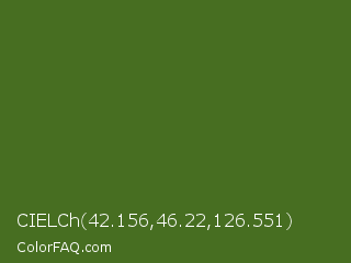 CIELCh 42.156,46.22,126.551 Color is a dark green color and the nearest color is Dark Moss Green #4a5d23. Hex code #476e21 and RGB value is rgb(71,110,33). In RGB color space, this color is composed of 28% red, 43% green, 13% blue, In CMYK color space, this color is composed of 35% cyan, 0% magenta, 70% yellow , 57% black , In HSL color space, this color has a hue angle of 90° , 54% saturation and 28% lightness.