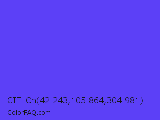 CIELCh 42.243,105.864,304.981 Color is a light indigo color and the nearest color is Majorelle Blue #6050dc. Hex code #5c40f7 and RGB value is rgb(92,64,247). In RGB color space, this color is composed of 36% red, 25% green, 97% blue, In CMYK color space, this color is composed of 63% cyan, 74% magenta, 0% yellow , 3% black , In HSL color space, this color has a hue angle of 249° , 92% saturation and 61% lightness.