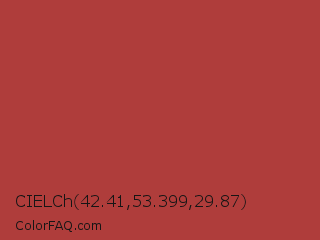 CIELCh 42.41,53.399,29.87 Color is a normal red color and the nearest color is Medium Carmine #af4035. Hex code #af3d3b and RGB value is rgb(175,61,59). In RGB color space, this color is composed of 69% red, 24% green, 23% blue, In CMYK color space, this color is composed of 0% cyan, 65% magenta, 66% yellow , 31% black , In HSL color space, this color has a hue angle of 1° , 50% saturation and 46% lightness.