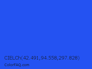 CIELCh 42.491,94.558,297.828 Color is a normal blue color and the nearest color is Palatinate Blue #273be2. Hex code #2452f2 and RGB value is rgb(36,82,242). In RGB color space, this color is composed of 14% red, 32% green, 95% blue, In CMYK color space, this color is composed of 85% cyan, 66% magenta, 0% yellow , 5% black , In HSL color space, this color has a hue angle of 227° , 89% saturation and 55% lightness.