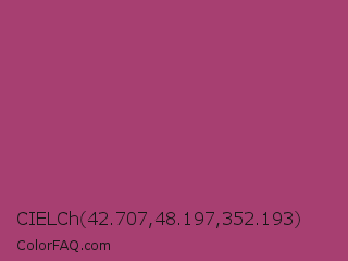 CIELCh 42.707,48.197,352.193 Color is a normal rose color and the nearest color is Rouge #a23b6c. Hex code #a73f71 and RGB value is rgb(167,63,113). In RGB color space, this color is composed of 65% red, 25% green, 44% blue, In CMYK color space, this color is composed of 0% cyan, 62% magenta, 32% yellow , 35% black , In HSL color space, this color has a hue angle of 331° , 45% saturation and 45% lightness.