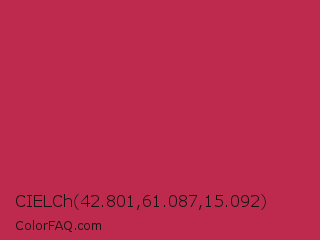 CIELCh 42.801,61.087,15.092 Color is a normal red color and the nearest color is Dingy Dungeon #c53151. Hex code #bd2a4e and RGB value is rgb(189,42,78). In RGB color space, this color is composed of 74% red, 16% green, 31% blue, In CMYK color space, this color is composed of 0% cyan, 78% magenta, 59% yellow , 26% black , In HSL color space, this color has a hue angle of 345° , 64% saturation and 45% lightness.