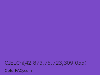 CIELCh 42.873,75.723,309.055 Color is a normal violet color and the nearest color is Fuchsia Blue #7a58c1. Hex code #7a49c8 and RGB value is rgb(122,73,200). In RGB color space, this color is composed of 48% red, 29% green, 78% blue, In CMYK color space, this color is composed of 39% cyan, 64% magenta, 0% yellow , 22% black , In HSL color space, this color has a hue angle of 263° , 54% saturation and 54% lightness.