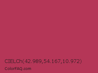 CIELCh 42.989,54.167,10.972 Color is a normal rose color and the nearest color is Night Shadz #aa375a. Hex code #b53657 and RGB value is rgb(181,54,87). In RGB color space, this color is composed of 71% red, 21% green, 34% blue, In CMYK color space, this color is composed of 0% cyan, 70% magenta, 52% yellow , 29% black , In HSL color space, this color has a hue angle of 344° , 54% saturation and 46% lightness.