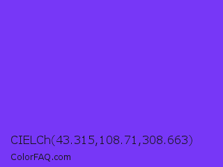 CIELCh 43.315,108.71,308.663 Color is a normal indigo color and the nearest color is Blue Violet #8a2be2. Hex code #7737f7 and RGB value is rgb(119,55,247). In RGB color space, this color is composed of 47% red, 22% green, 97% blue, In CMYK color space, this color is composed of 52% cyan, 78% magenta, 0% yellow , 3% black , In HSL color space, this color has a hue angle of 260° , 92% saturation and 59% lightness.