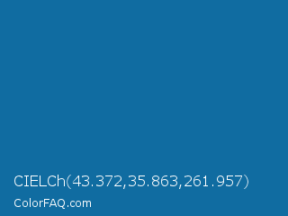 CIELCh 43.372,35.863,261.957 Color is a normal blue color and the nearest color is Matisse #1b659d. Hex code #106ca1 and RGB value is rgb(16,108,161). In RGB color space, this color is composed of 6% red, 42% green, 63% blue, In CMYK color space, this color is composed of 90% cyan, 33% magenta, 0% yellow , 37% black , In HSL color space, this color has a hue angle of 202° , 82% saturation and 35% lightness.