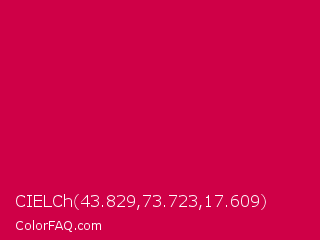 CIELCh 43.829,73.723,17.609 Color is a normal rose color and the nearest color is Spanish Carmine #d10047. Hex code #cf0047 and RGB value is rgb(207,0,71). In RGB color space, this color is composed of 81% red, 0% green, 28% blue, In CMYK color space, this color is composed of 0% cyan, 100% magenta, 66% yellow , 19% black , In HSL color space, this color has a hue angle of 339° , 100% saturation and 41% lightness.