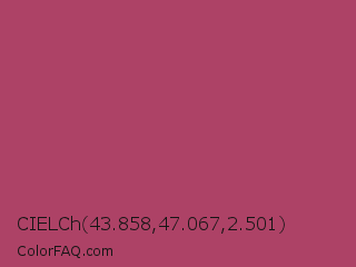 CIELCh 43.858,47.067,2.501 Color is a normal rose color and the nearest color is Medium Ruby #aa4069. Hex code #ad4266 and RGB value is rgb(173,66,102). In RGB color space, this color is composed of 68% red, 26% green, 40% blue, In CMYK color space, this color is composed of 0% cyan, 62% magenta, 41% yellow , 32% black , In HSL color space, this color has a hue angle of 340° , 45% saturation and 47% lightness.