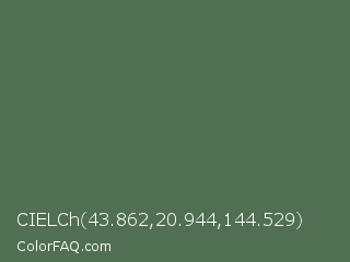 CIELCh 43.862,20.944,144.529 Color is a normal green color and the nearest color is Finlandia #556d56. Hex code #516f53 and RGB value is rgb(81,111,83). In RGB color space, this color is composed of 32% red, 44% green, 33% blue, In CMYK color space, this color is composed of 27% cyan, 0% magenta, 25% yellow , 56% black , In HSL color space, this color has a hue angle of 124° , 16% saturation and 38% lightness.