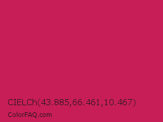 CIELCh 43.885,66.461,10.467 Color is a normal rose color and the nearest color is Rose Red #c21e56. Hex code #c71e57 and RGB value is rgb(199,30,87). In RGB color space, this color is composed of 78% red, 12% green, 34% blue, In CMYK color space, this color is composed of 0% cyan, 85% magenta, 56% yellow , 22% black , In HSL color space, this color has a hue angle of 340° , 74% saturation and 45% lightness.