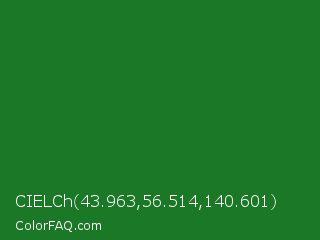 CIELCh 43.963,56.514,140.601 Color is a dark green color and the nearest color is Forest Green #228b22. Hex code #1b7827 and RGB value is rgb(27,120,39). In RGB color space, this color is composed of 11% red, 47% green, 15% blue, In CMYK color space, this color is composed of 78% cyan, 0% magenta, 68% yellow , 53% black , In HSL color space, this color has a hue angle of 128° , 63% saturation and 29% lightness.
